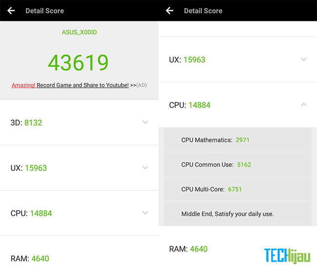 Seperti yang bisa kamu lihat, perangkat dengan nomor model X00ID ini “hanya” mencatatkan skor sekitar 43ribuan pada pengujian AnTuTu, sedikit lebih rendah dibandingkan dengan pendahulunya (?) yaitu Zenfone 3 Max meski sama-sama menggunakan chipset Qualcomm Snapdragon 430 beserta RAM 3GB.